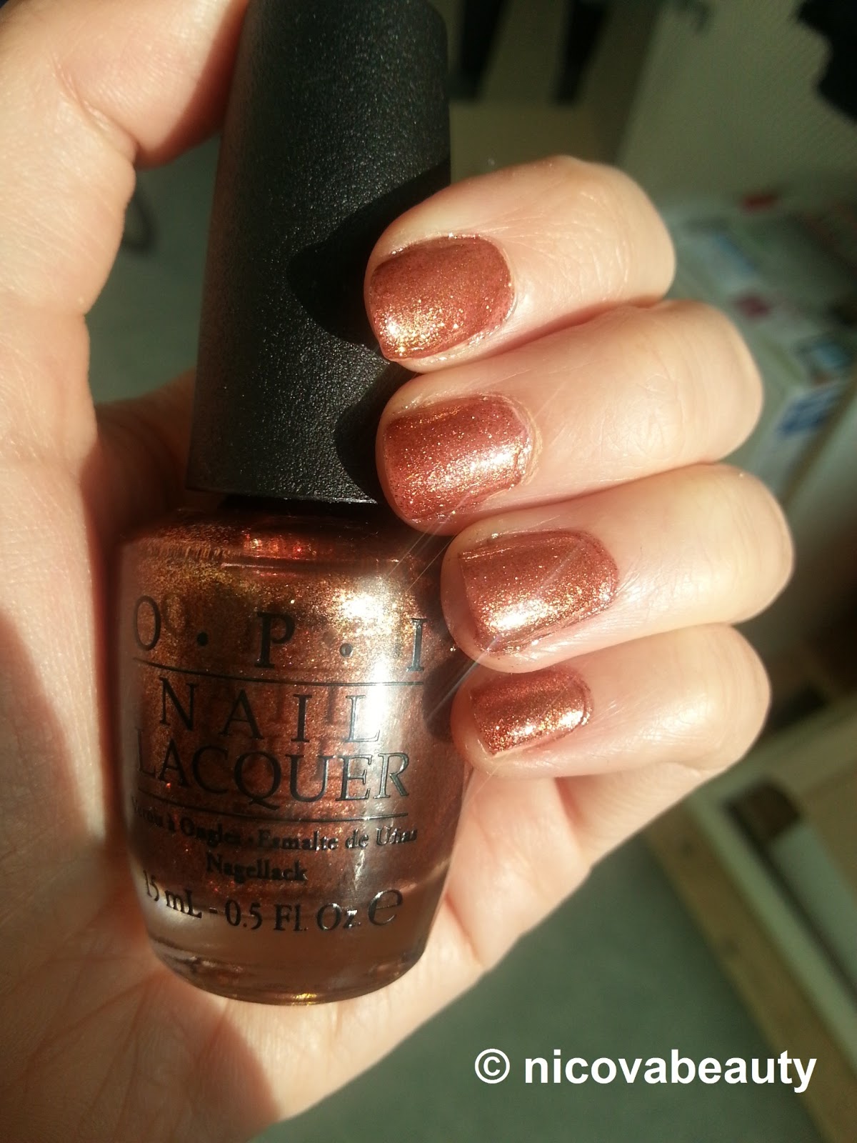 Yesterday I was shopping at our local drugstore called Müller and I found near the Cash-desk a table with reduced nailpolishes from diffrent brands. Some of the colors were by OPI and they have been on sale for about 11,- US Dollar. I had that for a while in my mind that I want to get a nailpolish from OPI but I did not buy one so far, but now I knew it was the right time for it and so I took this beautiful bronze golden shimmer color and brought this baby home with me yay!!